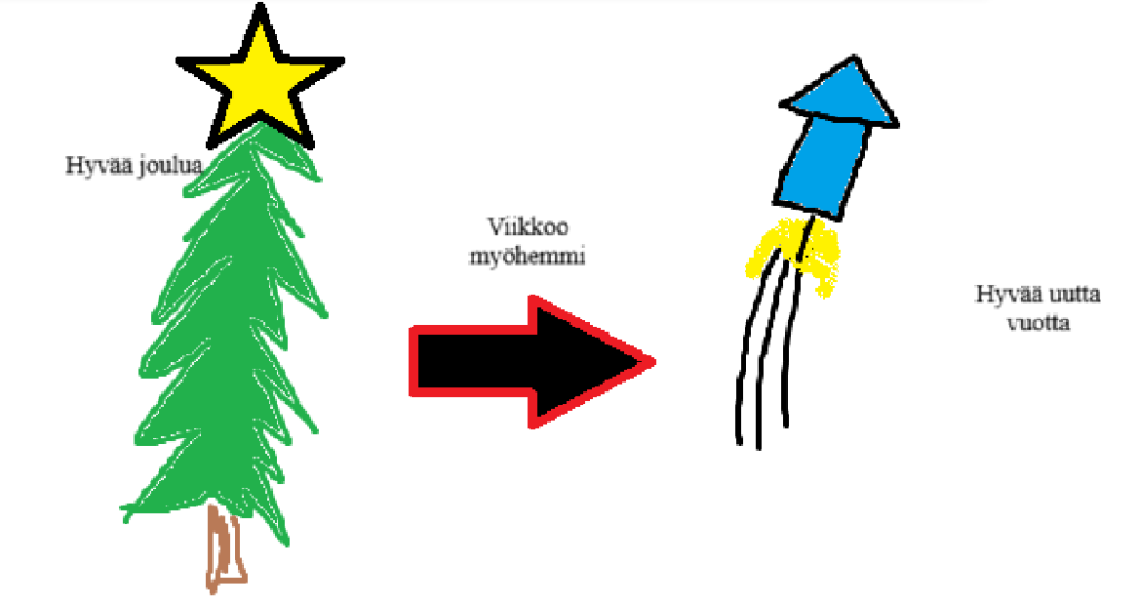 Nyt lienee paikallaan toivottaa hyvät joulut ja uudet vuodet. Kerhon graafikko teki postikorttiluonnoksen asiasta ja taas… parasta mitä sillä rahalla sai.